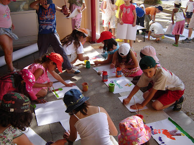 Depois disso fomos a uma tenda fazer pinturas com areia de cores e fomos ao encontro dos nossos correspondentes.